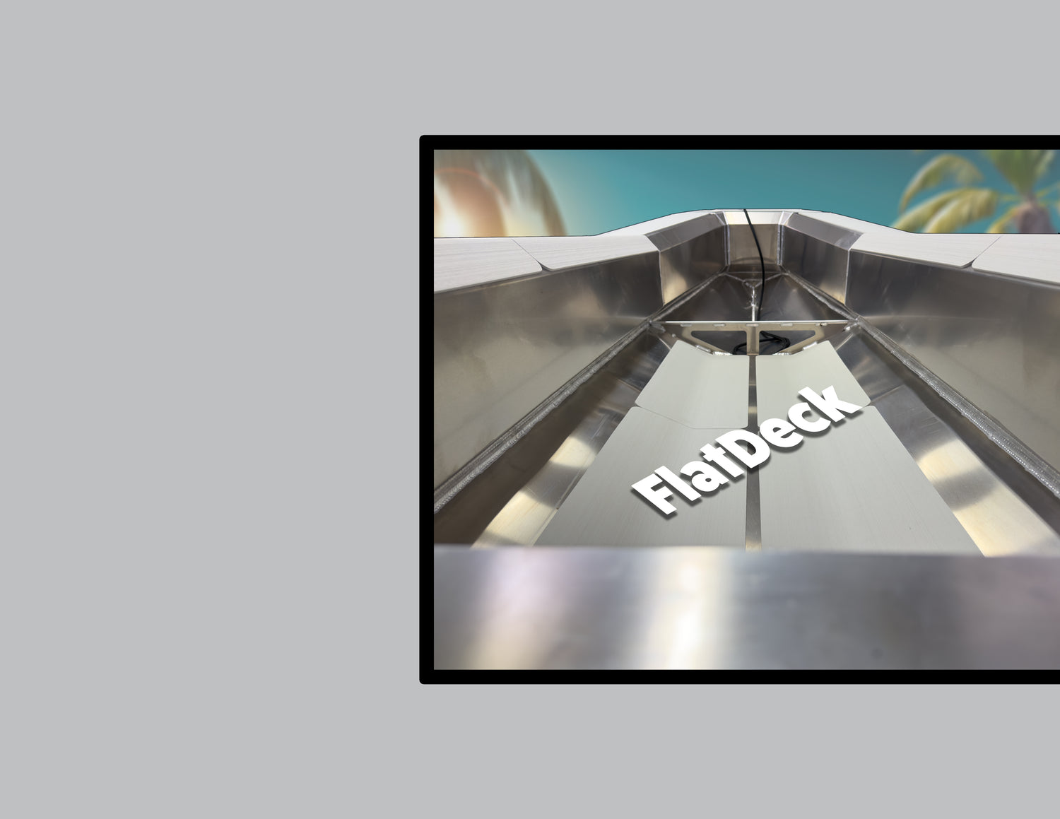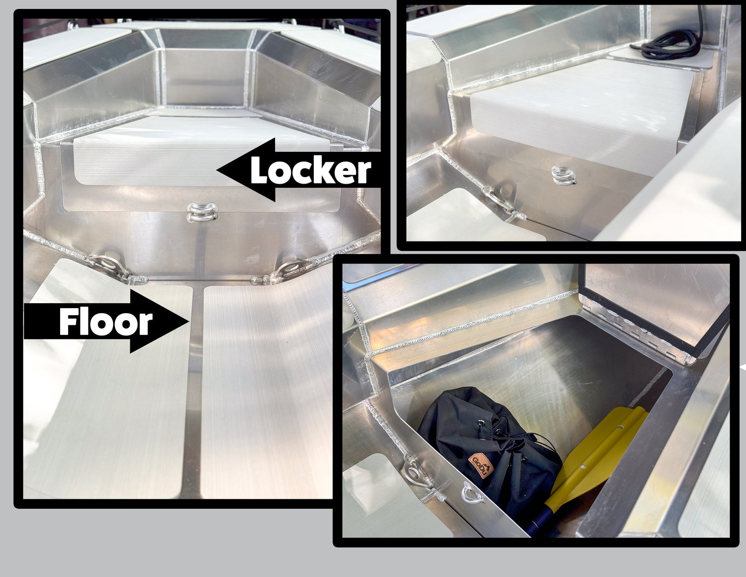 With a minimal bump to weight, and a big improvement to riding and boarding comfort, The FlatDeck model is an easy selection for those who want a floor, but not a bow locker. No bow locker means more storage so you can pile gear and items up high. Water drains off the floor and underneath, to a small bilge which keeps items drier. A fuel line can also be run under the floor.