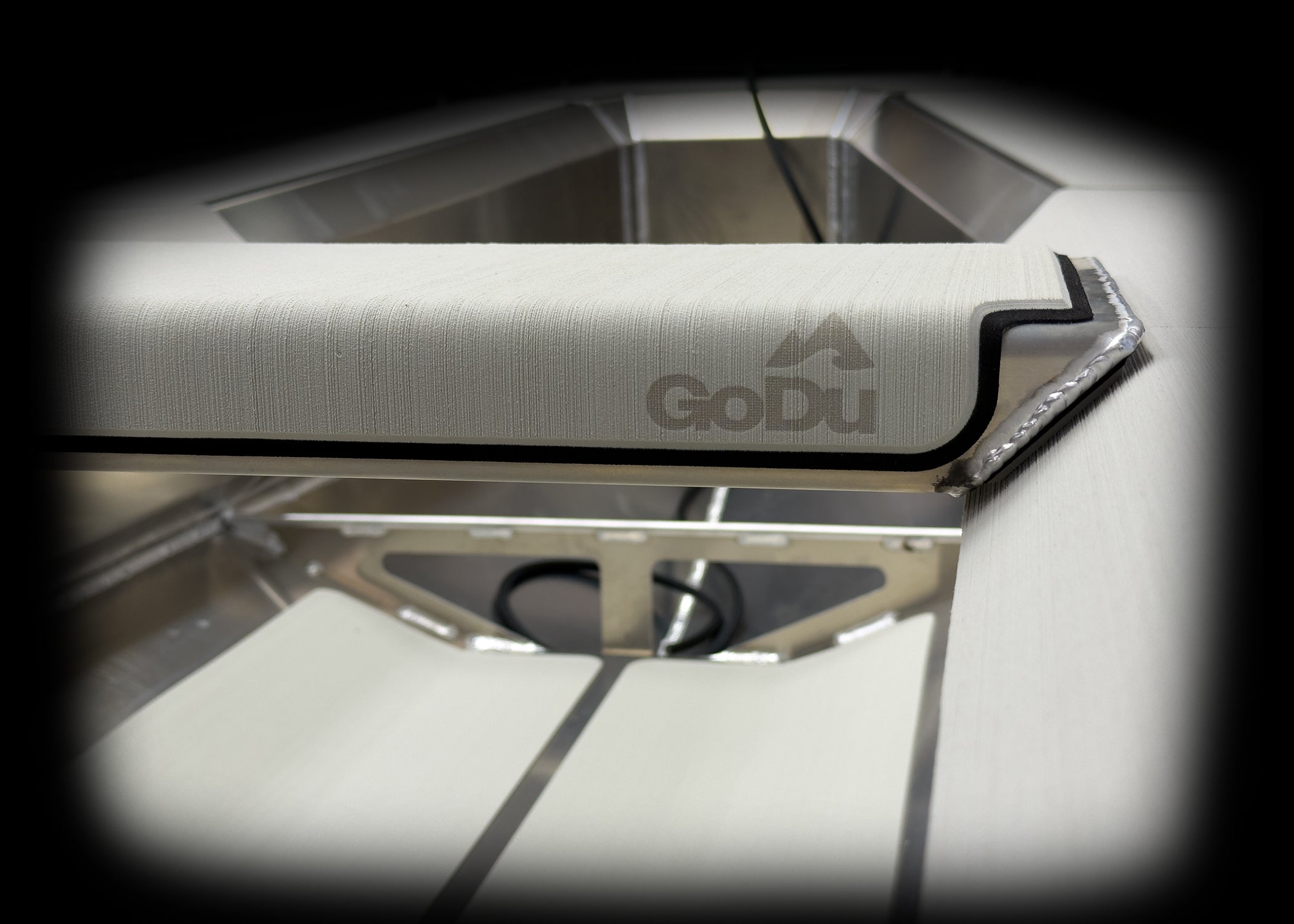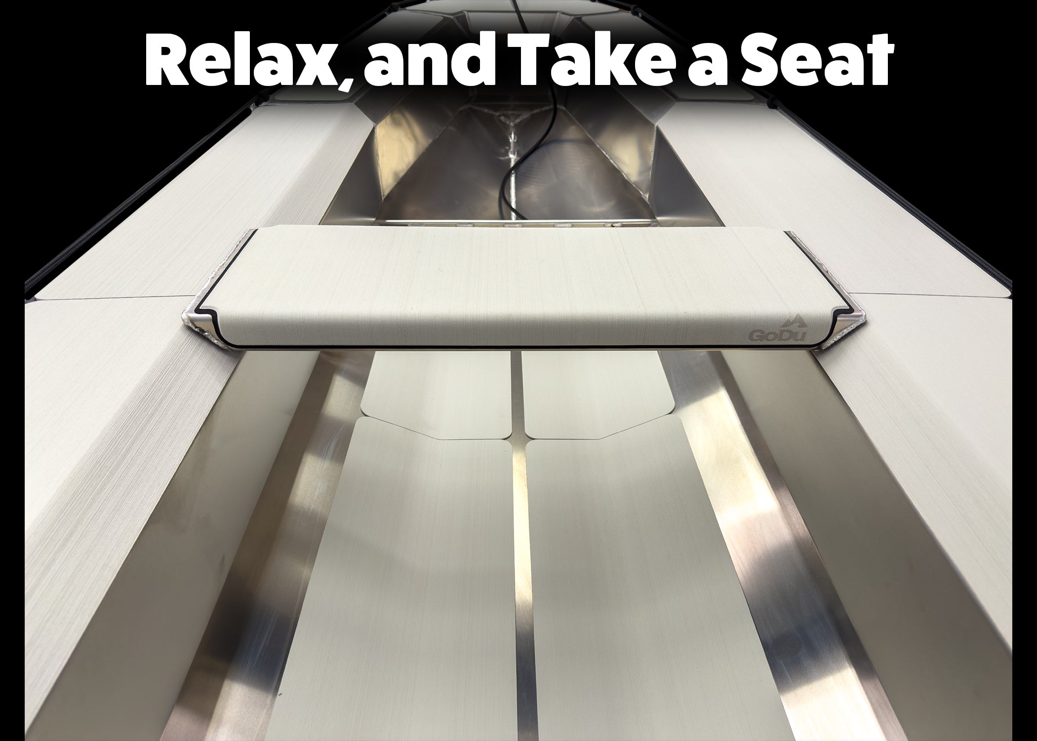 The GoDu Bench Seat can be placed along the toons by simply picking it up and setting it where you want. No tools, no fuss, just pure utility. The SeaDek on SeaDek design makes the bench seat very grippy and it stays in place when underway, even if empty. It can also be quickly stowed out of the way when not needed.